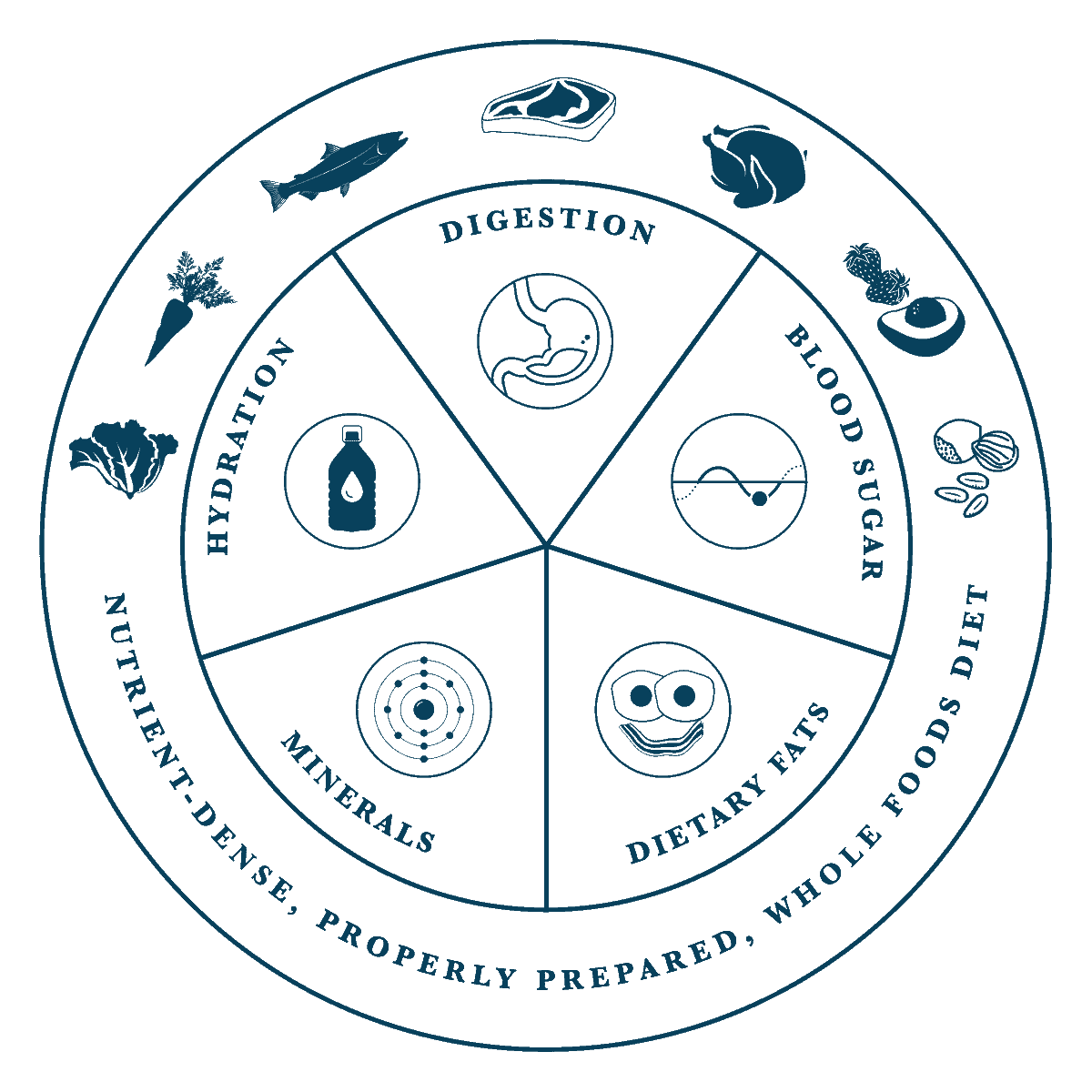 Each person has their own unique nutritional needs. Because of this, bio-individuality and the following 6 foundations are at the core of nutritional therapy services.